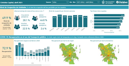 Por esto, seguimos trabajando en conjunto con la Secretaría de Planeamiento, Modernización y Relaciones Internacionales de la Municipalidad de Córdoba y ya disponemos de tableros de visualización de datos sobre movilidad urbana, que son de acceso público y de interés para todos los ciudadanos que quieren sumarse al movimiento de Gobierno Abierto, que apuesta por reflejar, con todas las partes, los datos disponibles para diseñar mejores políticas públicas.