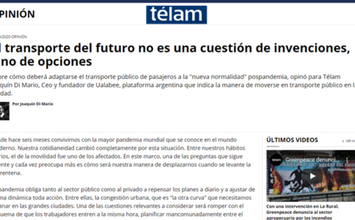 -En un proyecto como el nuestro en un rubro tan golpeado, creo que el desafío es asegurar la caja para poder crecer en un escenario que cambia día a día. La clave será mantenernos flexibles para acompañar la nueva normalidad en las ciudades y aprovechar las oportunidades y alianzas que surjan. Estamos convencidos de que el transporte del futuro no es una cuestión de invenciones sino de opciones, y sólo en la multimodalidad los servicios en nuestro rubro tienen una continuidad asegurada. Desde Ualabee tenemos claro que pueden cambiar las formas de movilizarse y tenemos que brindar herramientas que permitan llegar a
